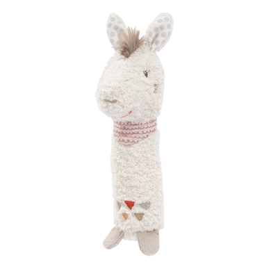 Der Lama-Greifling ist mit viel Liebe zum Detail gefertigt. Die sorgfältig ausgewählten Materialien sind besonders weich und hautfreundlich, sodass Ihr Baby ihn bedenkenlos in den Mund nehmen kann. Die verschiedenen Elemente, wie beispielsweise die rasselnden Kügelchen im Inneren des Lamas und die bunten Bänder, regen die Neugierde an und fördern die auditive Wahrnehmung.