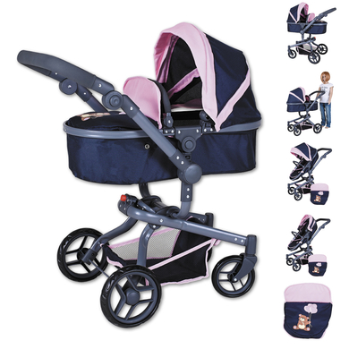 knorr toys® Puppenwagen Boonk – Navy pink bear blau: Der Traum für kleine Puppeneltern