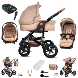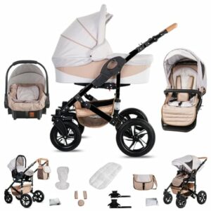 Friedrich Hugo Natureline / 3 in 1 Kombi Kinderwagen Set / Öko Nostalgie Kinderwagen Elisabeth Creme