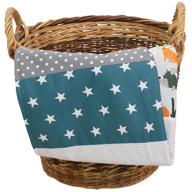 Alle verwendeten Stoffe sind schadstoffgeprüft und entsprechen den höchsten Qualitätsstandards. So kannst du sicher sein, dass dein Kind nur mit Materialien in Berührung kommt, die unbedenklich und sanft zur Haut sind. Die Decke ist außerdem pflegeleicht und kann problemlos in der Waschmaschine gewaschen werden.